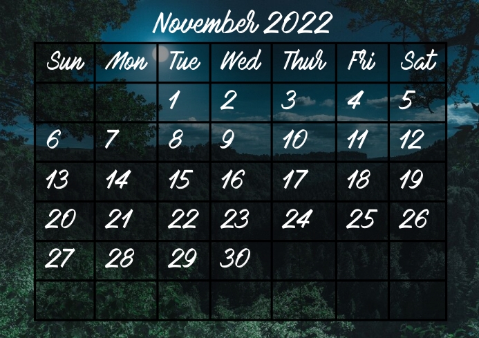 November 2022 month calendar template | PosterMyWall